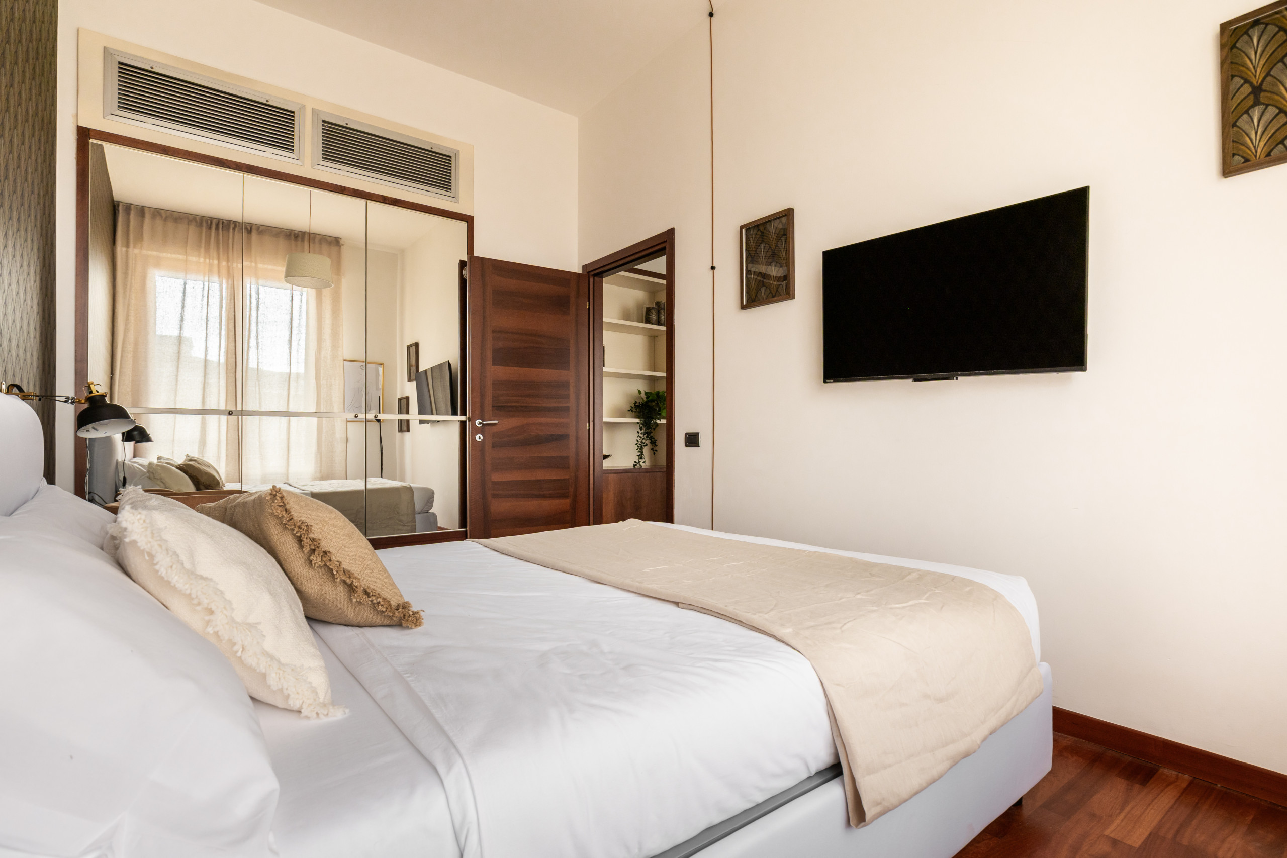 Bilocale per 4 persone con ampia zona giorno con cucina a vista e divano letto doppio, camera matrimoniale, bagno con box doccia e ampio balcone. L’appartamento si trova al secondo piano di Palazzo Candiani, un moderno complesso con palestra e garage vicino al Politecnico e alla stazione di Milano Bovisa e dispone di tutte le comodità: lavatrice, lavastoviglie, forno a microonde, TV, internet con fibra, aria condizionata.