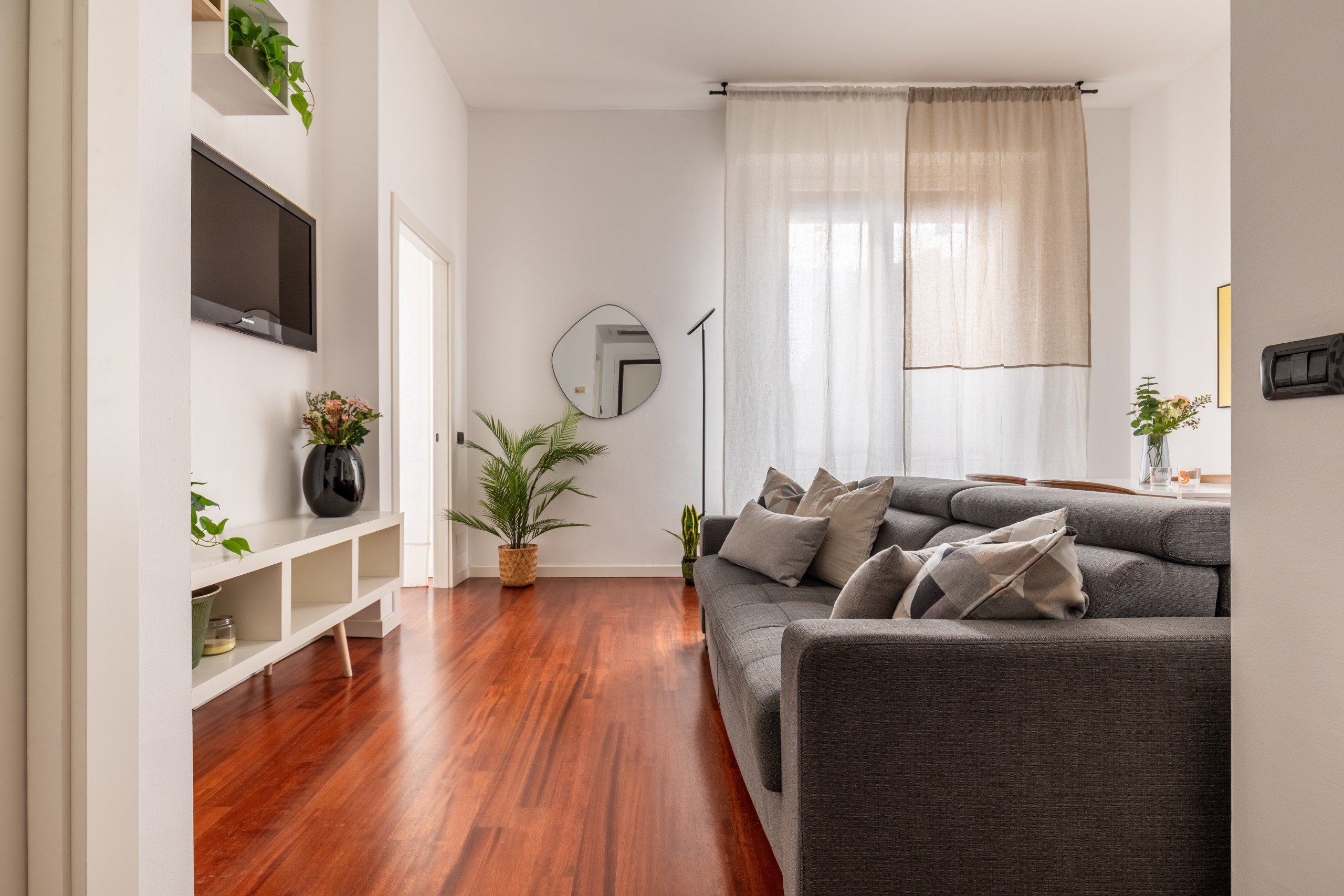 One-bedroom apartment for 4 people with a large living area with open kitchen and double sofa bed, a double bedroom, a bathroom with shower cubicle and a large balcony. The apartment is located on the second floor of Palazzo Candiani, a modern complex with gym and garage near the Politecnico and the Milano Bovisa station and has all the comforts: washing machine, dishwasher, microwave oven, TV, fiber internet, air conditioning.