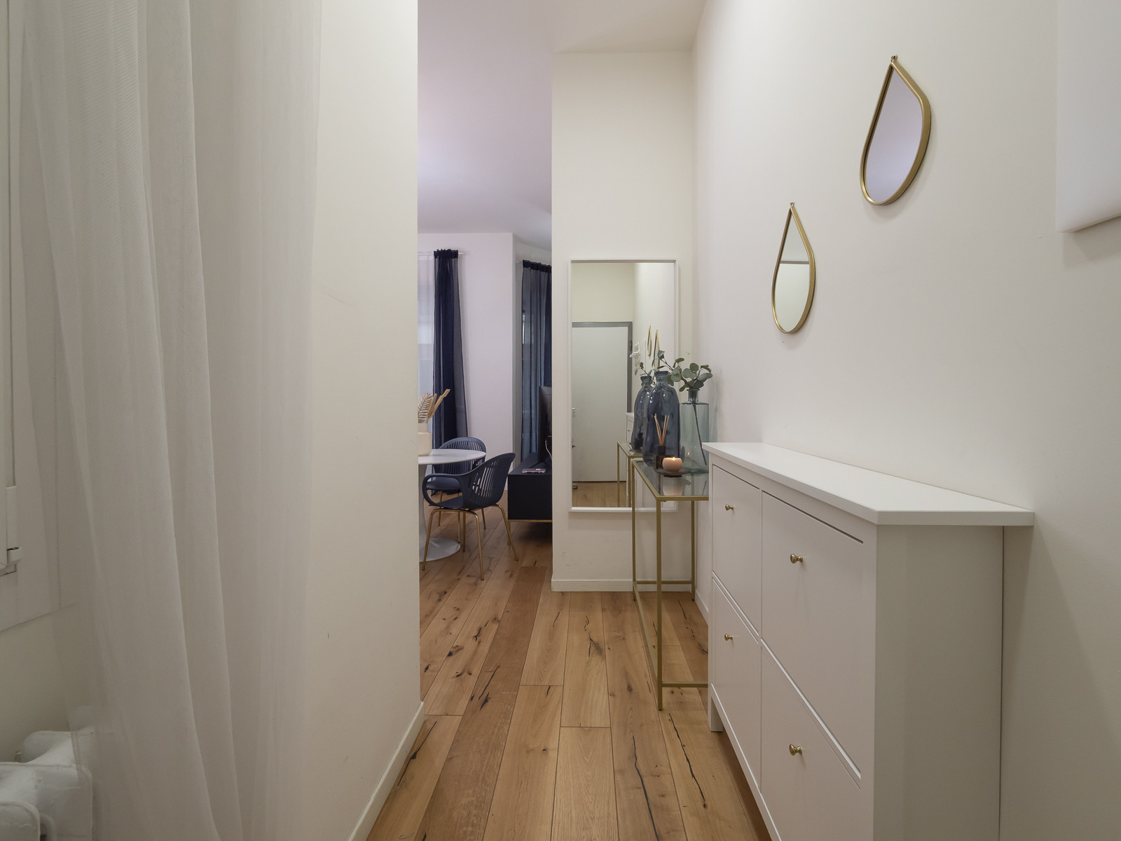 Elegant and comfortable one-bedroom apartment in Brera district, located in a period building in one of the most characteristic and central areas in Milan, only 1,5 km away from the Duomo. The apartment is composed of a bright living room with a double sofa bed and open kitchen, a bedroom with a double bed, and a bathroom. Air conditioning, wifi, dishwasher, washing machine, dryer are among the top facilities.
